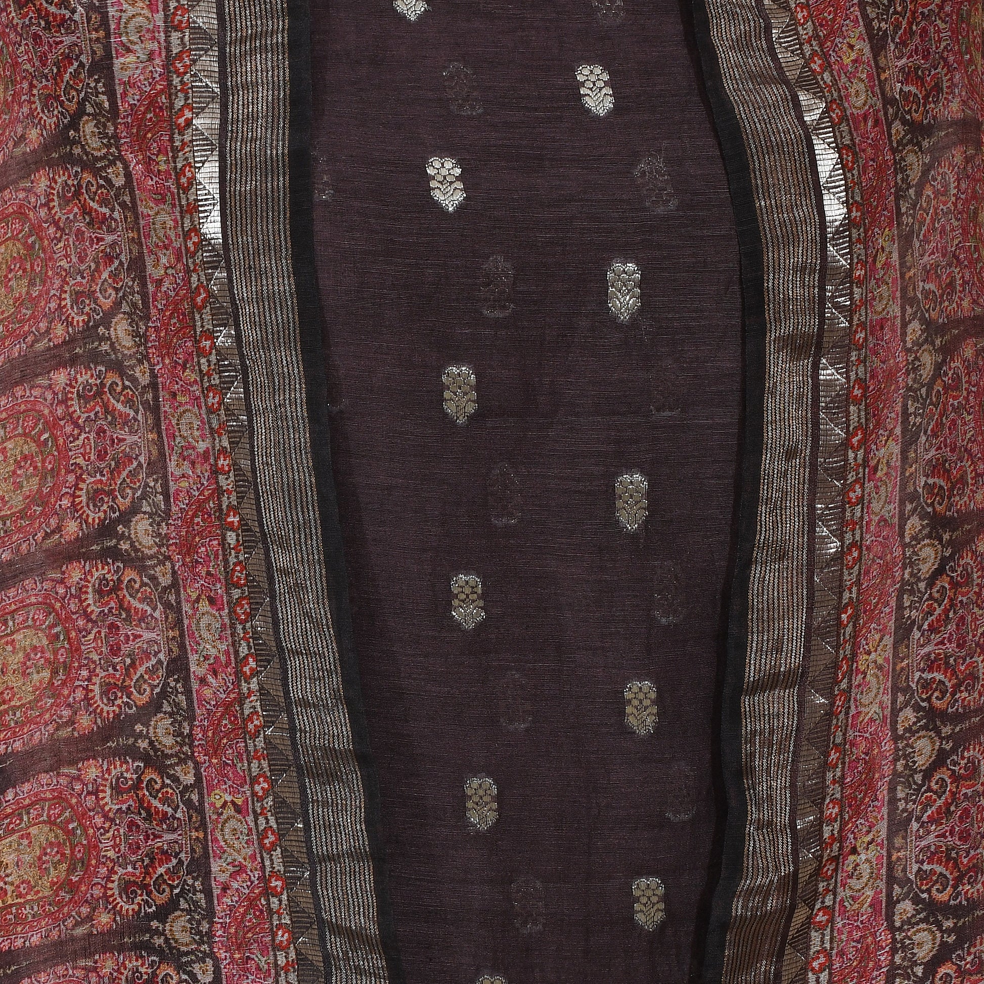 Chocolate Brown Silk Linen Unstitched Suit with Dupatta