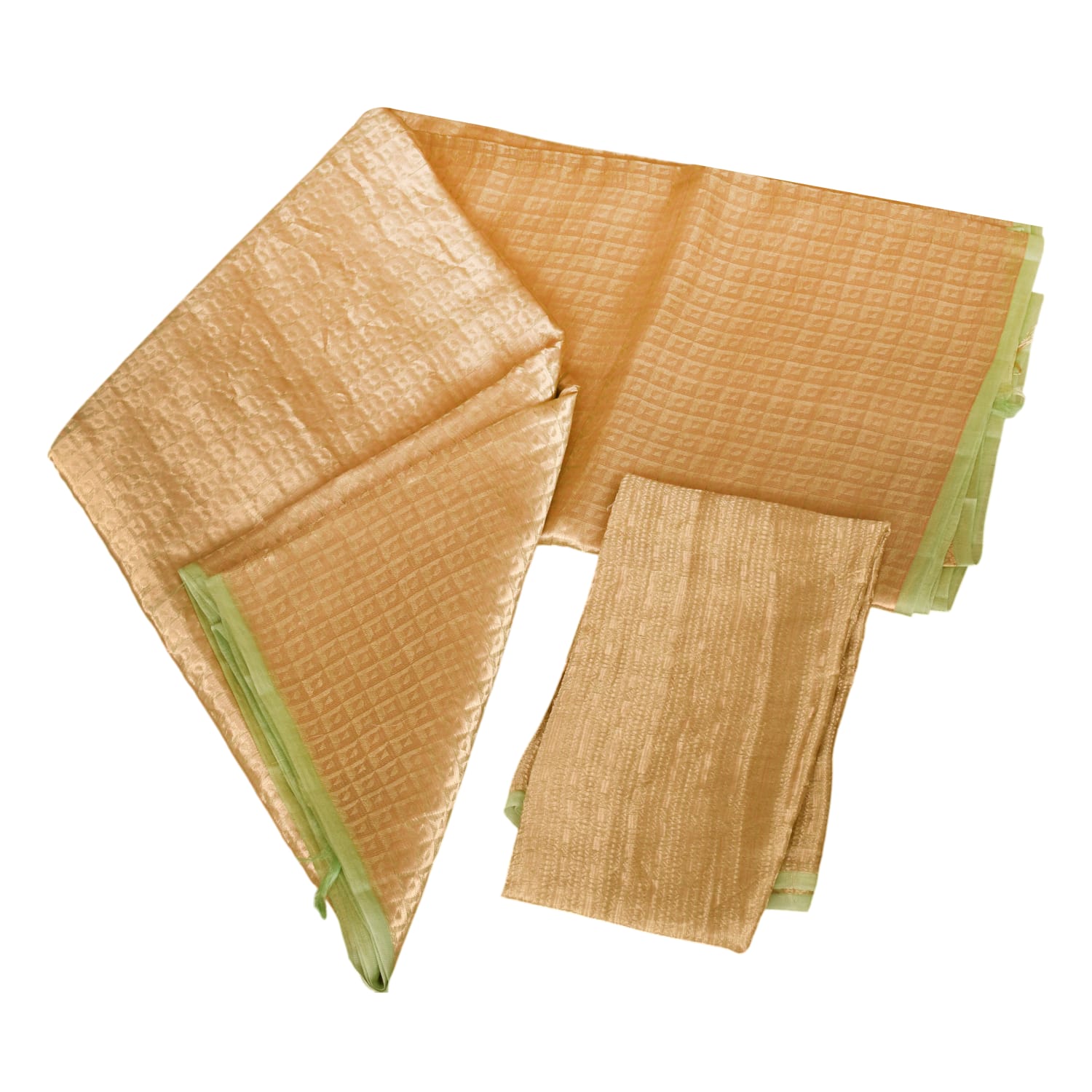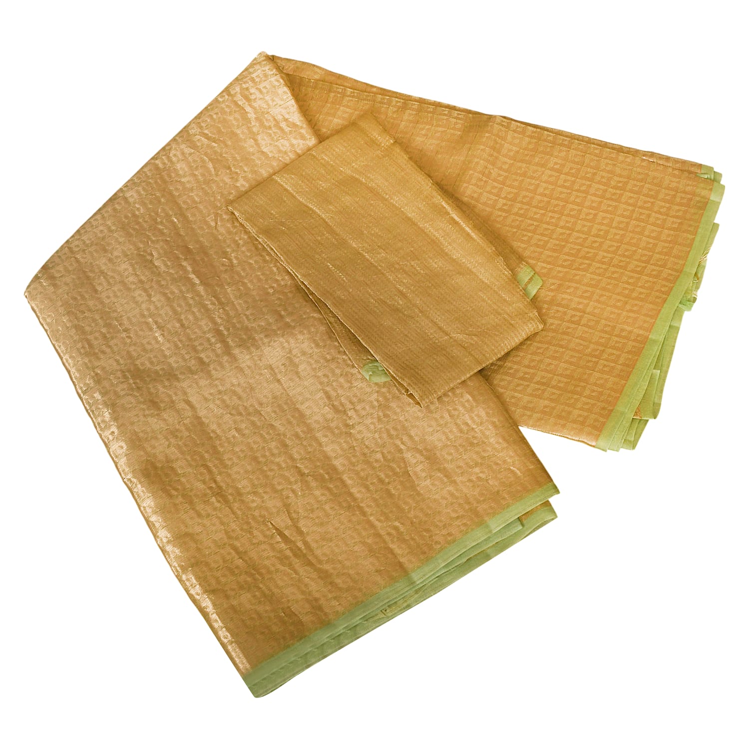 Elevate your ethnic wardrobe with this exquisite mint green saree, crafted from premium tissue silk that drapes with effortless grace. The digital block print design showcases intricate patterns with sharp, defined details characteristic of traditional block printing techniques. The lightweight tissue silk fabric ensures comfort throughout the day while maintaining its structured elegance. Perfect for festive occasions, weddings, and cultural celebrations, this saree combines contemporary digital printing with the timeless appeal of classic silk weaving. The soft mint hue complements a wide range of skin tones, making it a versatile addition to your collection. Pair with traditional jewelry and a contrasting blouse to complete your sophisticated look.