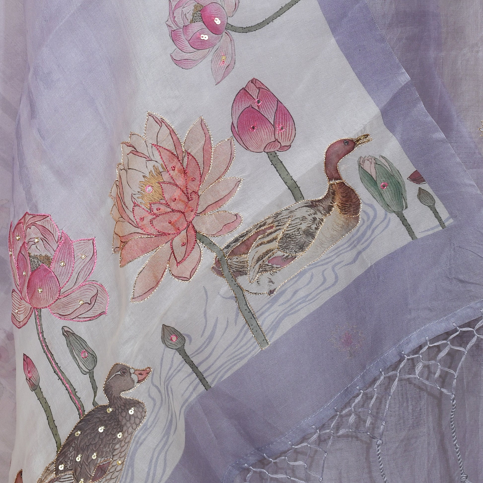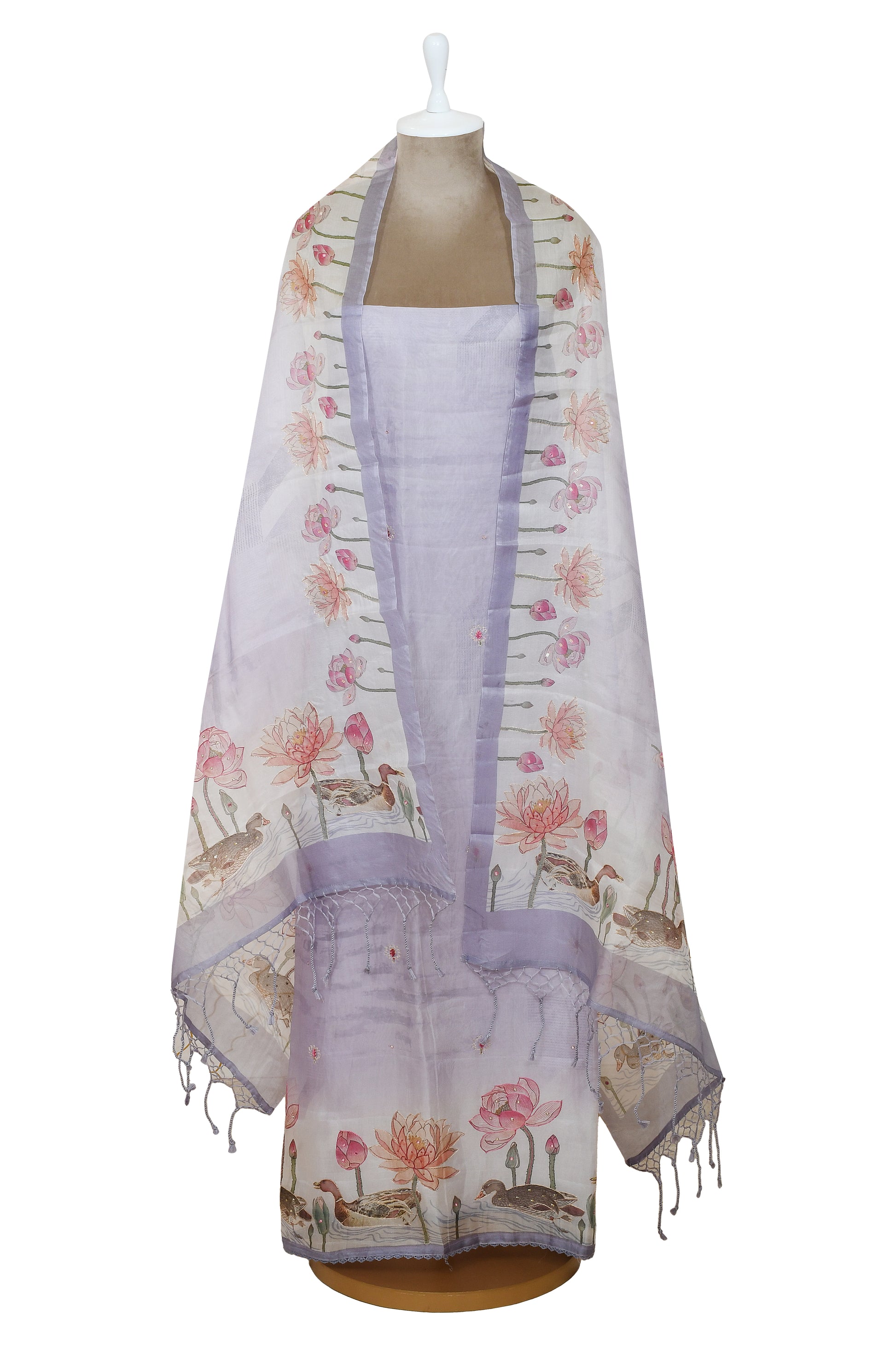 Purple Color Hand Embroidery Unstitched Organza Suit