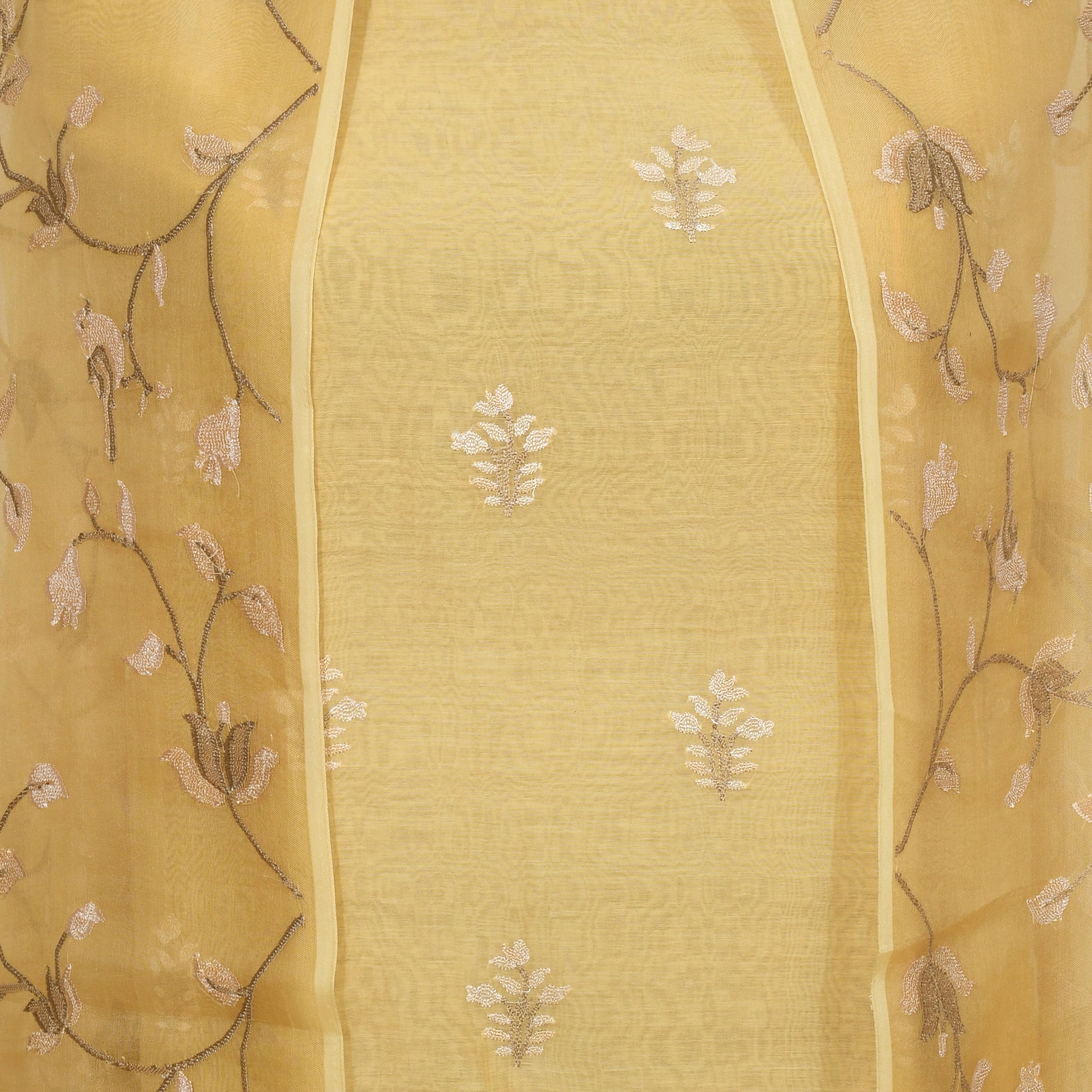Yellow Mul Chanderi Embroidered Unstitched Suit with Embroidered Dupatta